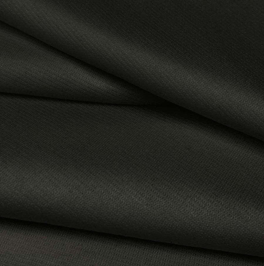La Tela de Punto Punto Roma Elástico - Lyon, con una composición de 97% poliéster y 3% elastano, tiene un gramaje de 282 gr/m2 y un ancho de 150 cm. El color liso impreso es Negro Noche con una proporción de tinta Cyan de 75, tinta Magenta de 66, tinta Yellow de 72 y tinta Black de 87, lo que se traduce en un tono oscuro y profundo con matices fríos.