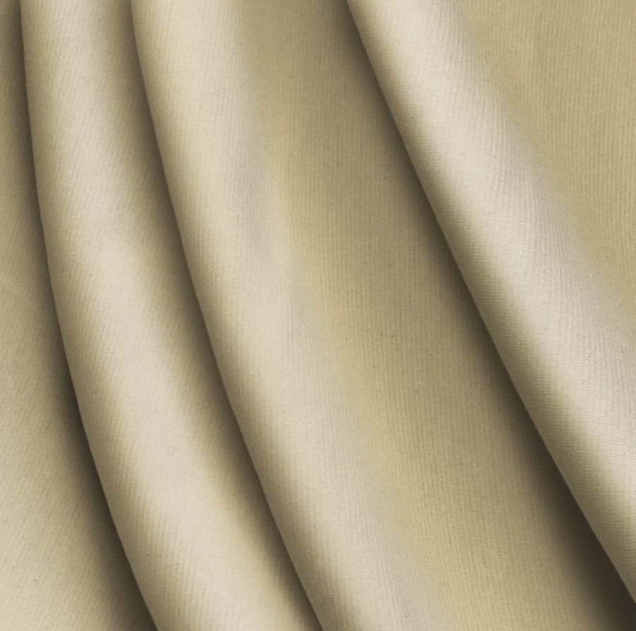 La tela base es Punto Roma Elástico - Lyon, con una composición de 97% poliéster y 3% elastano, lo que le da una gran elasticidad y adaptabilidad al cuerpo. El color liso impreso es un tono amarillo-beige francés claro, con un CMYK de 15 20 47 2, lo que lo convierte en un tono suave y neutro. Este color secundario combina particularmente bien con otros colores neutros, como el blanco, el negro y el gris, así como con tonos más vivos como el rojo o el verde.