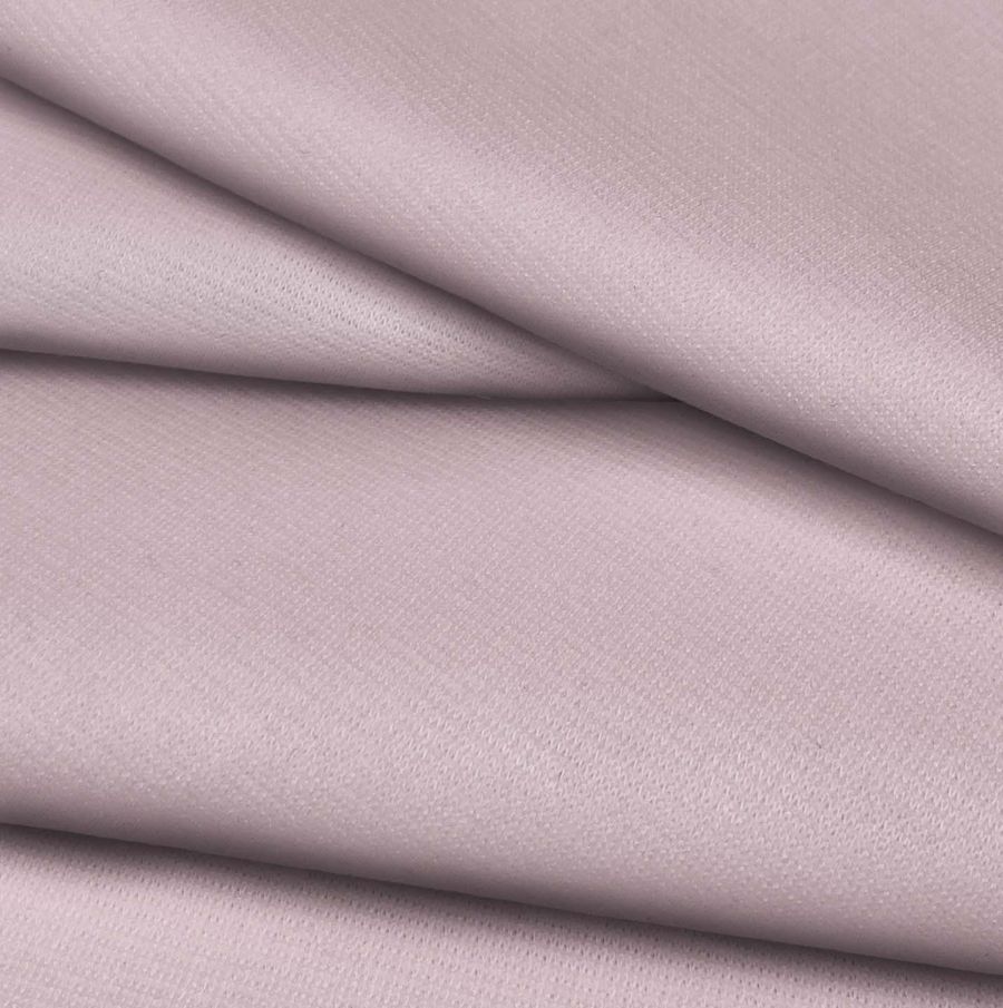 La tela base es Punto Roma Elástico - Lyon, de tipo de punto y composición de 97% poliéster y 3% elastano, con gramaje de 282 gr/m2 y ancho de 150 cm. El color liso impreso es Rosa Donut, con un CMYK de 9 28 12 0. Este color es un rosa suave y delicado, que transmite serenidad y dulzura. Este color es perfecto para combinar con tonos oscuros como negro o azul marino, y también con tonos tierra como marrón o beige.