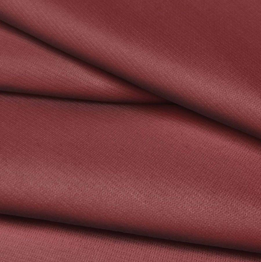 La tela base es Punto Roma Elástico - Lyon, compuesta por 97% de poliéster y 3% de elastano, con una textura suave al tacto y un gramaje de 282 gr/m2. El color liso impreso en esta tela combina un tono marrón y granate, con una proporción de 32 en tinta cyan, 80 en tinta magenta, 61 en tinta yellow y 38 en tinta black, expresado en CMYK (32 80 61 38). Este color secundario simboliza la pasión, la energía y la fuerza, y combina especialmente bien con tonos grises, negros y cremas; creando una armonía elegante y sofisticada.