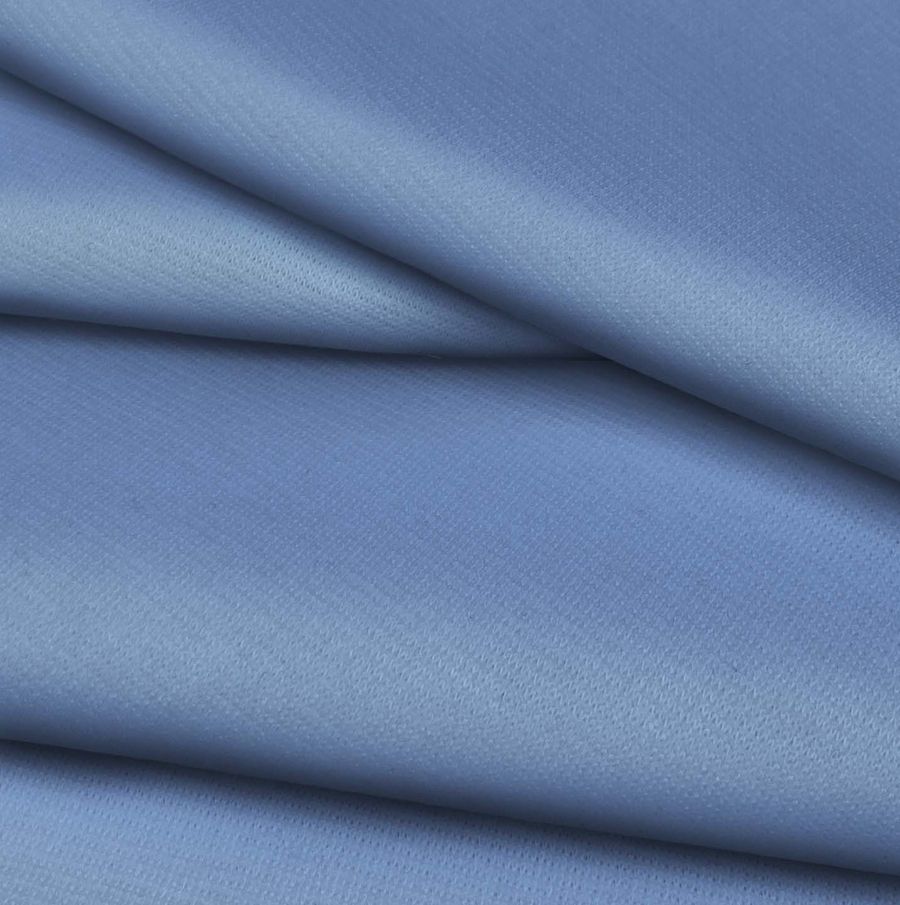 La tela base es el Punto Roma Elástico - Lyon, una tela de Punto compuesta por un 97% de POLIÉSTER y un 3% de ELASTANO, con un gramaje de 282 gr/m2 y un ancho de 150 cm. El color liso impreso es de un Azul-Azul violeta claro, cuya tinta Cyan es de 62, Magenta es de 40, Yellow es de 5 y Black es de 0, reflejando un CMYK de 62 40 5 0. Este color secundario transmite tranquilidad, frescura y calma, y se combina a la perfección con colores neutros como el gris o el blanco, y también con otros tonos azules para crear un efecto monocromático y sofisticado. Es importante destacar que el tejido está impreso con el color liso a una sola cara mediante la técnica de impresión digital textil, lo que le da un aspecto vibrante y de alta calidad.