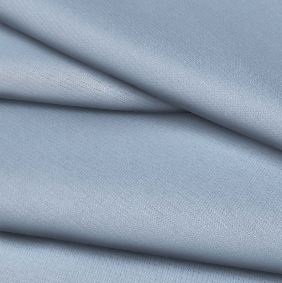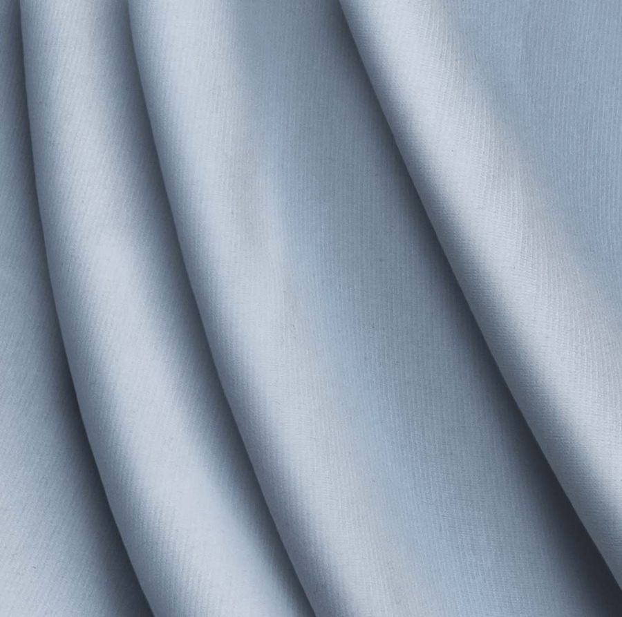 La tela base es el Punto Roma Elástico - Lyon, una tela de punto con una composición de 97% poliéster y 3% elastano, con un gramaje de 282 gr/m2 y un ancho de 150 cm. El color liso impreso es azul grisáceo con un CMYK de 40 19 7 0. Su carácter simbólico nos sugiere elegancia, sobriedad y seriedad en un tono intermedio entre el azul y el gris. El azul grisáceo resulta fácilmente combinable, especialmente con tonos pastel y ocres. Es un tejido impreso con el color liso en una sola cara por impresión digital textil.