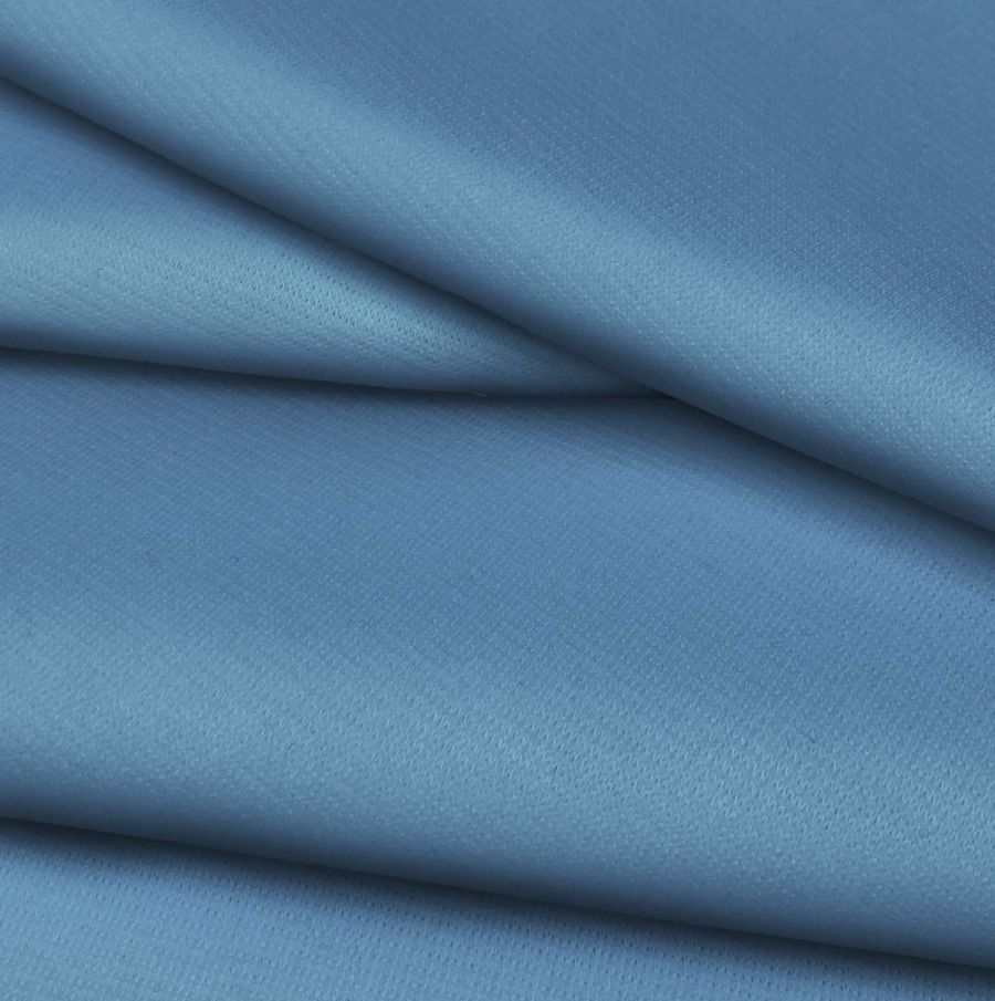 La tela base de este tejido es Punto Roma Elástico - Lyon, compuesta mayoritariamente por poliéster y elastano, con un gramaje de 282 gr/m2 y un ancho de 150 cm. El color liso impreso es azul SteelBlue, con un contenido de tinta CMYK de 67 39 15 2. Este color se caracteriza por su vibrante tonalidad azulada, que representa la fuerza y la estabilidad. Combina perfectamente con tonos oro y plateados, lo que permite crear contrastes impactantes y sofisticados.