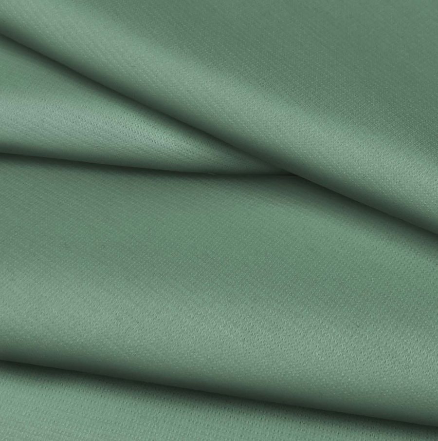 La tela de Punto Roma Elástico - Lyon tiene un color liso impreso en tonalidad verde mar opaco con un CMYK de 60 27 55 10. Este color secundario transmite una sensación de tranquilidad y estabilidad, representando el equilibrio emocional y la conexión con la naturaleza. Su combinación con otros colores como el blanco o el gris crea un efecto relajante y armonioso.