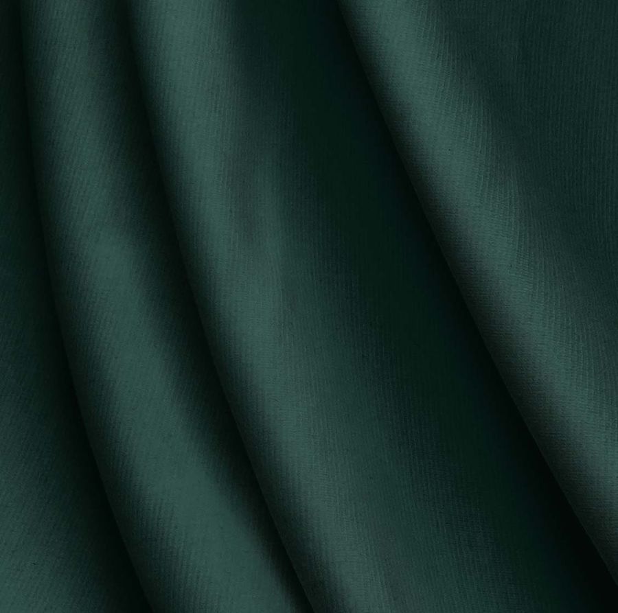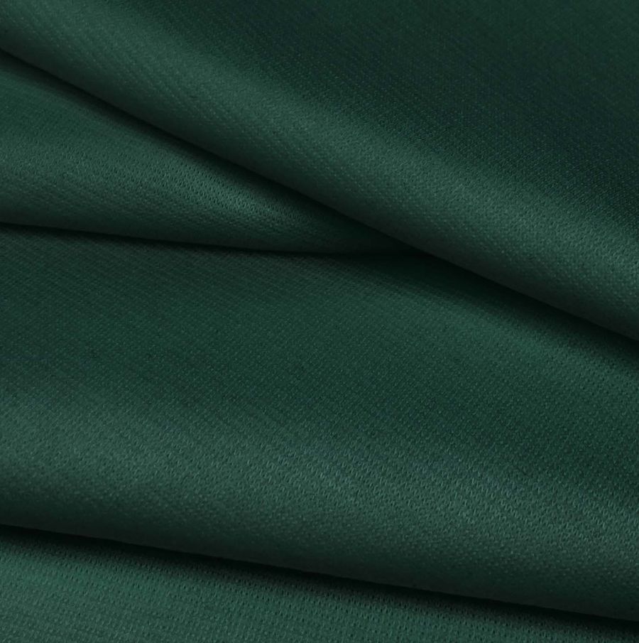 La tela base es el Punto Roma Elástico - Lyon, de 150 cm de ancho y 282 gr/m2. Está compuesta por un 97% de poliéster y un 3% de elastano, lo que le proporciona una suave textura al tacto. En cuanto al color liso impreso, se trata de un verde bosque oscuro con un contenido de CMYK de 91 50 73 66. Este color simboliza la elegancia, la serenidad y el equilibrio, y se combina particularmente bien con tonos terrosos, dorados y beige.
