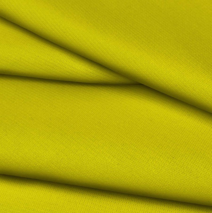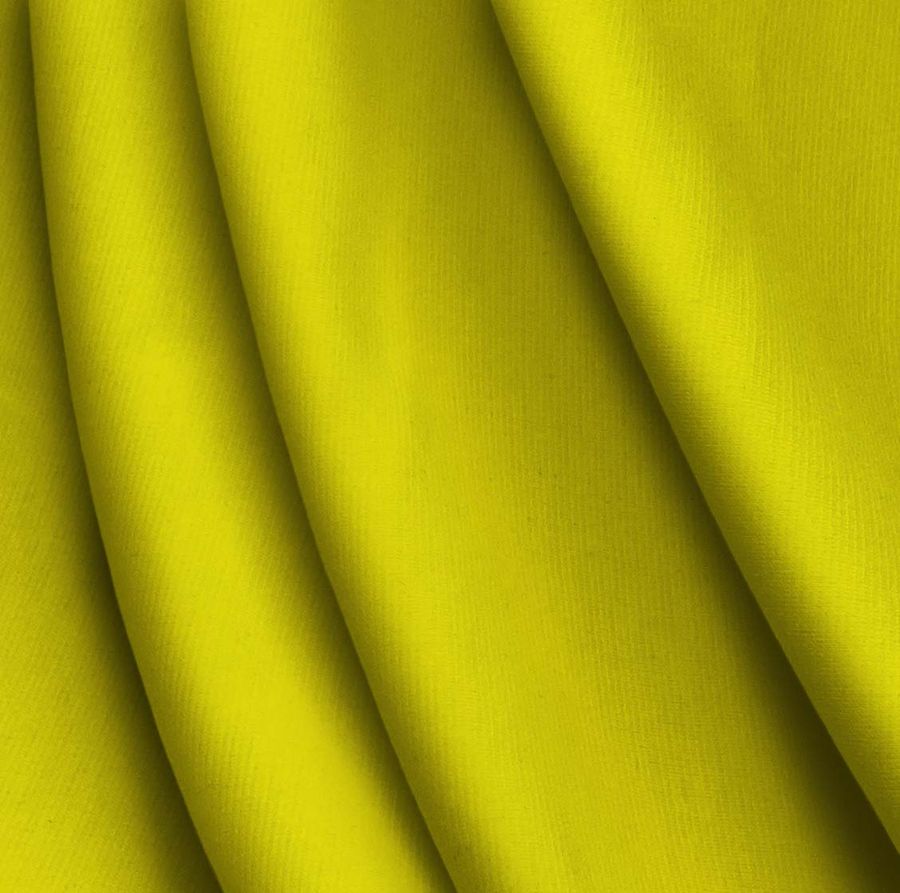La tela base es la Punto Roma Elástico - Lyon, una tela de punto con una composición de 97% poliéster y 3% elastano, con un gramaje de 282 gr/m2 y un ancho de 150 cm. El color liso impreso es un amarillo plátano con un CMYK de 20 9 96 1. Este color secundario es suave y alegre, transmitiendo frescura y vitalidad. Combina especialmente bien con tonos tierra, como marrón o beige, así como con grises y azules oscuros.