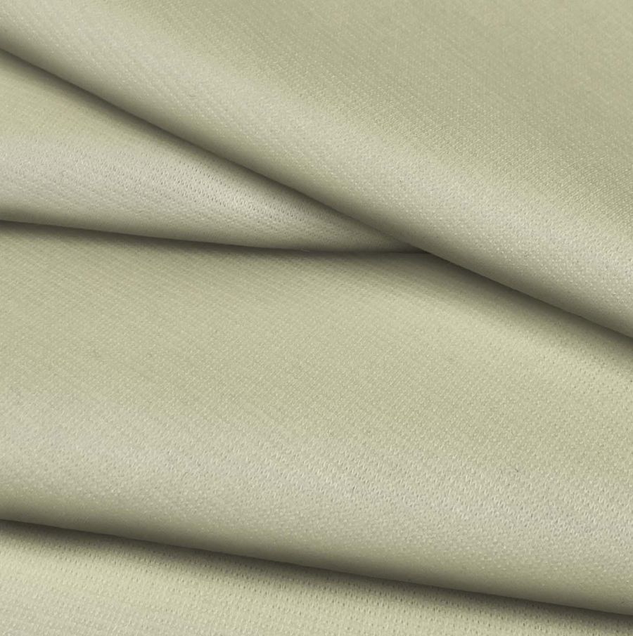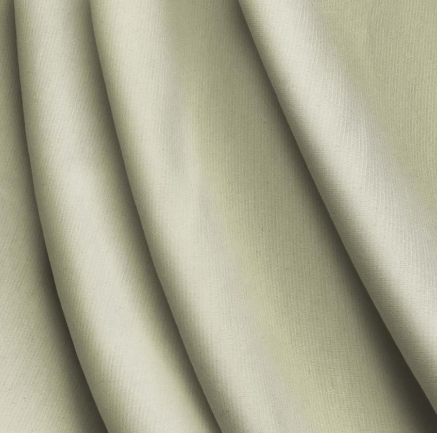 La tela base es el Punto Roma Elástico - Lyon compuesta por un 97% de POLIÉSTER y un 3% de ELASTANO con un gramaje de 282 gr/m2 y una anchura de 150 cm. El color liso impreso es de un tono Crudo-Ceniza Blanca, con una tinta Cyan de 18, una tinta Magenta de 11, una tinta Yellow de 38 y una tinta Black de 1, generando un CMYK de 18 11 38 1. Este color se presenta con una tonalidad suave y cálida que evoca una sensación de tranquilidad y confort. Se combina a la perfección con otros colores similares como el beige o el gris claro.