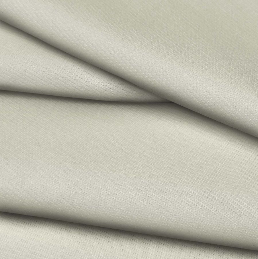 La tela base es Punto Roma Elástico - Lyon, una tela de punto compuesta por 97% poliéster y 3% elastano, con un gramaje de 282 gr/m2 y un ancho de 150 cm. Su color liso impreso es Crudo/Chocolate blanco con un CMYK de 9 5 22 0, lo que le da un tono cálido y acogedor, con un toque de chocolate que añade profundidad a la paleta de color. Se combina especialmente bien con tonos marrones y tierra, dorados y ocres.