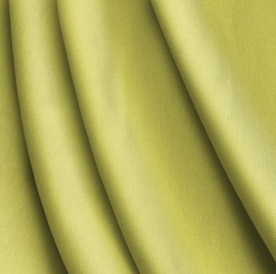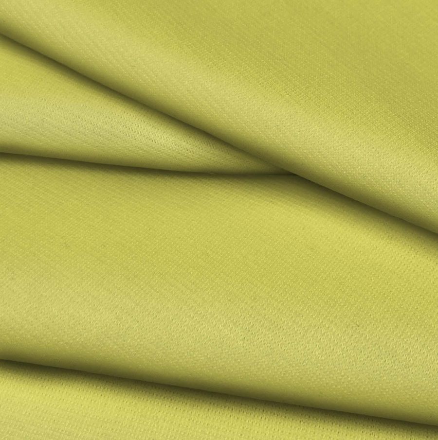 La tela base es el tejido de Punto Roma Elástico - Lyon, compuesta por un 97% de poliéster y un 3% de elastano. Su gramaje es de 282 gr/m2 y su ancho es de 150 cm. En cuanto al color liso impreso, se trata de un tono amarillo plátano, con valores del CMYK de 16, 3, 73, 0 respectivamente. El color se caracteriza por su suavidad y la sensación de alegría que transmite. Combina particularmente bien con tonalidades verdes y turquesas, creando una sensación de frescura y vitalidad.