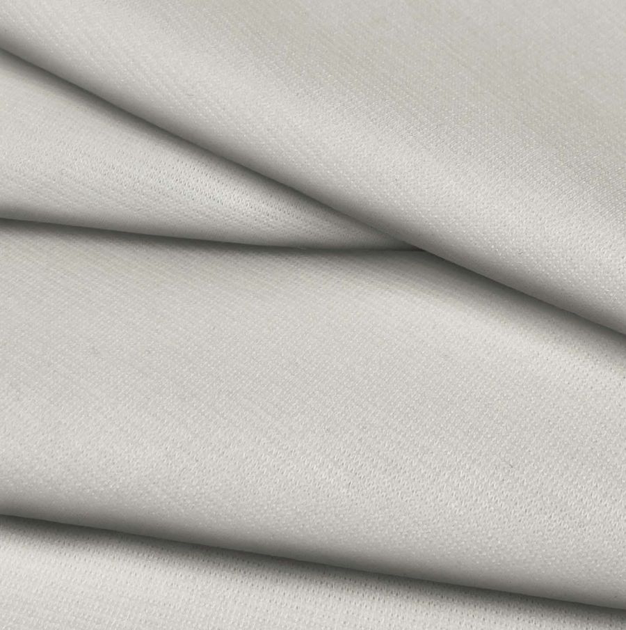 La tela base es el Punto Roma Elástico - Lyon, compuesta por un 97% de poliéster y un 3% de elastano, con un gramaje de 282 gr/m2 y un ancho de 150 cm. Su color liso impreso es un blanco blanquecino, con un CMYK de 8 5 15 0, lo que le da un tono suave y agradable a la vista. El color secundario que se utiliza en su impresión es el amarillo, el cual se combina muy bien con tonos neutros como el gris y el blanco, así como con tonos verde agua y azules suaves.