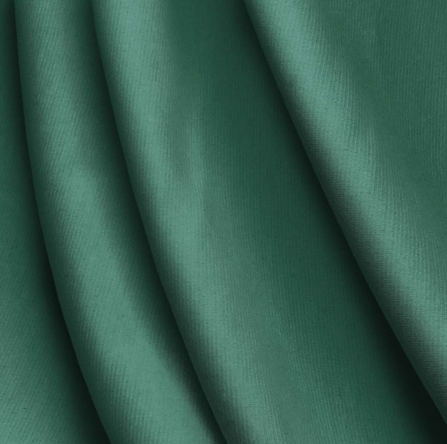 La tela base es el Punto Roma Elástico - Lyon, una tela de punto compuesta por 97% poliéster y 3% elastano con un gramaje de 282 gr/m2 y un ancho de 150 cm. El color liso impreso es verde mar profundo, con una combinación de CMYK de 76 31 61 17. Este color evoca la naturaleza, la elegancia y la sofisticación, y combina bien con tonos neutros como el blanco, el negro y el gris, así como también con colores más vibrantes como el rojo y el amarillo. Es importante destacar que la tela está impresa con el color liso a una sola cara por impresión digital textil.