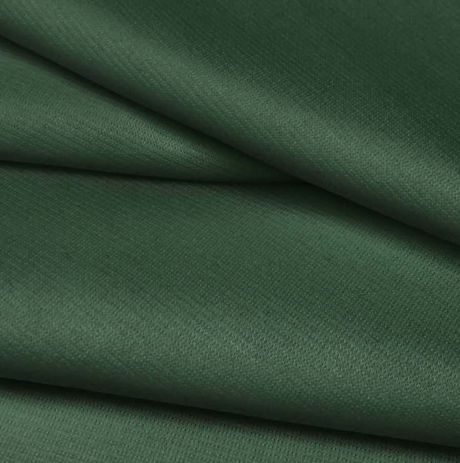 La tela base es el Punto Roma Elástico - Lyon, una tela de punto compuesta por un 97% de poliéster y un 3% de elastano, con un gramaje de 282 gr/m2 y un ancho de 150 cm. Su color liso impreso es un verde bosque oscuro, con un CMYK de 79 45 78 49. Este color se caracteriza por su intensidad y profundidad, transmitiendo una sensación natural y relajante. Combina especialmente bien con tonos beige, marrones, y otros tonos verdes más claros.