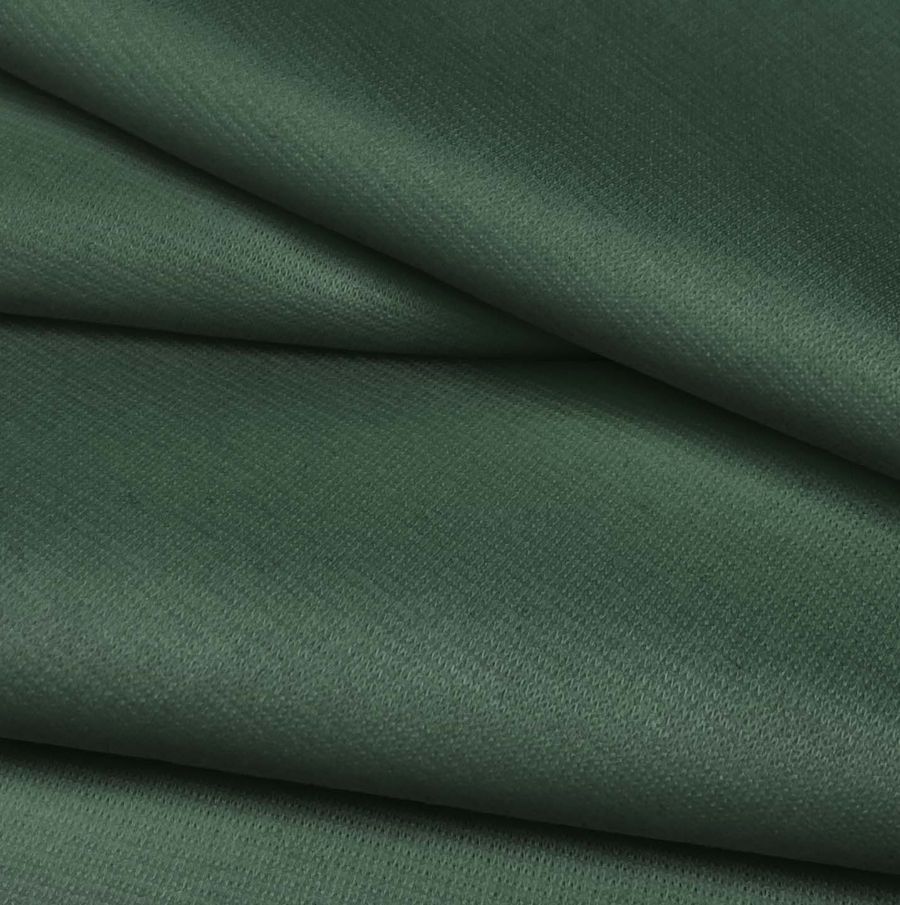La tela base es el Punto Roma Elástico - Lyon, una tela de punto compuesta por un 97% de poliéster y un 3% de elastano, con un gramaje de 282 gr/m2 y un ancho de 150 cm. El color liso impreso es un verde bosque oscuro, con un CMYK de 75 45 69 48. Este color evoca la naturaleza y la serenidad, brindando un aire fresco y relajado a las prendas confeccionadas con este tejido. El verde bosque oscuro combina perfectamente con tonos tierra, como el marrón o el beige, y con tonos cálidos, como el amarillo o el naranja.