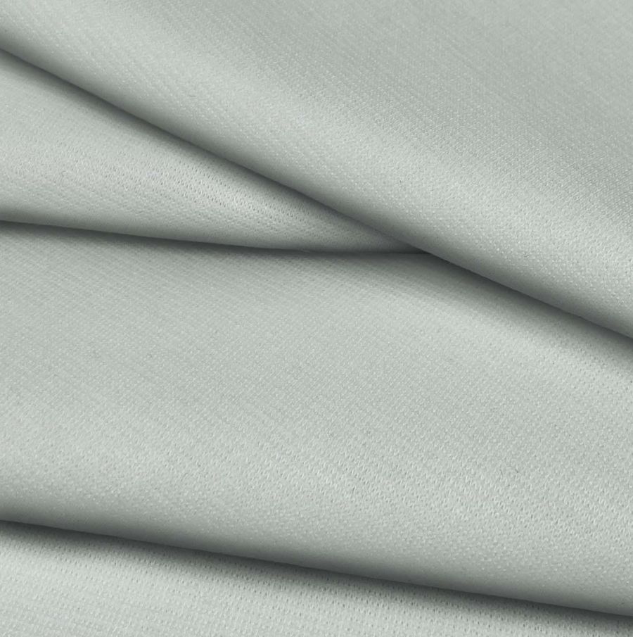 La tela base es de Punto Roma Elástico - Lyon, una tela de punto compuesta por un 97% de poliéster y un 3% de elastano. Su gramaje es de 282 gr/m2 y su ancho es de 150 cm. El color liso impreso es un vibrante tono de verde aguamarina clara, cuyo CMYK es de 22 7 18 0, compuesto por una pequeña cantidad de tinta cian, magenta y amarilla, sin ninguna cantidad de tinta negra. Este color combina perfectamente con tonos terrosos, como marrones y beige, así como con tonalidades más neutras como grises y blancos.