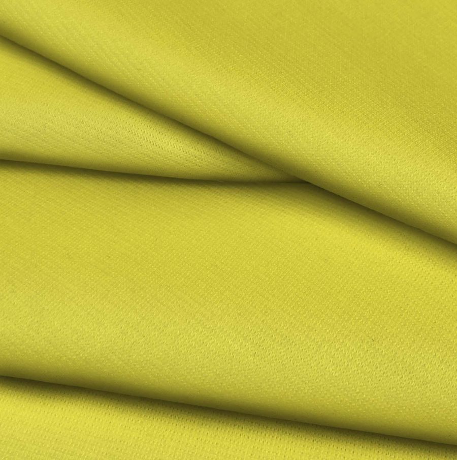 La tela base es Punto Roma Elástico - Lyon, compuesta por 97% poliéster y 3% elastano, con un gramaje de 282 gr/m2 y un ancho de 150 cm. El color liso es Amarillo Canario, cuyo CMYK es 9 0 81 0 y está impreso a una sola cara por medio de la tecnología de sublimación. Este color es un tono vivo y vibrante, con un matiz amarillo cálido y una intensidad alta. Combina bien con tonos neutros como el gris y el blanco, así como con otros tonos brillantes como el rosa y el verde lima.