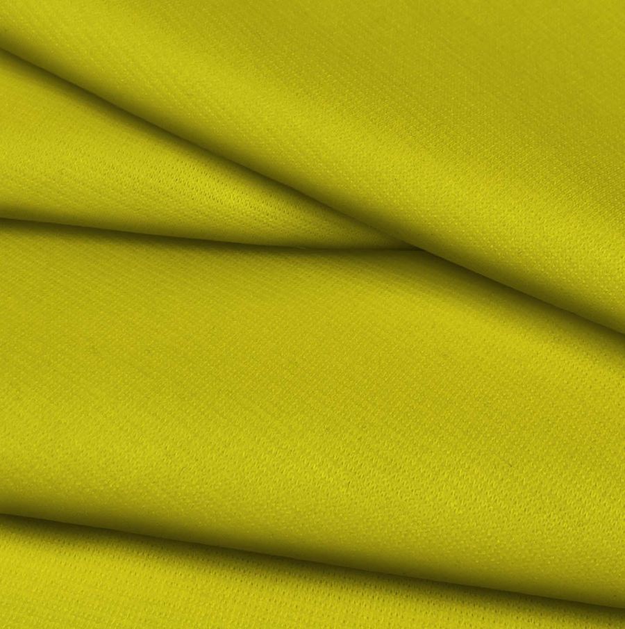 La tela base es el Punto Roma Elástico - Lyon, una tela de punto compuesta por un 97% de poliéster y un 3% de elastano, con un gramaje de 282 gr/m2 y un ancho de 150 cm. Su color liso impreso es un amarillo plátano, cuyo CMYK es 24 13 96 2. Este color secundario se caracteriza por su luminosidad y vitalidad, evocando la alegría y el optimismo. Se combina especialmente bien con tonos azules, verdes y marrones.
