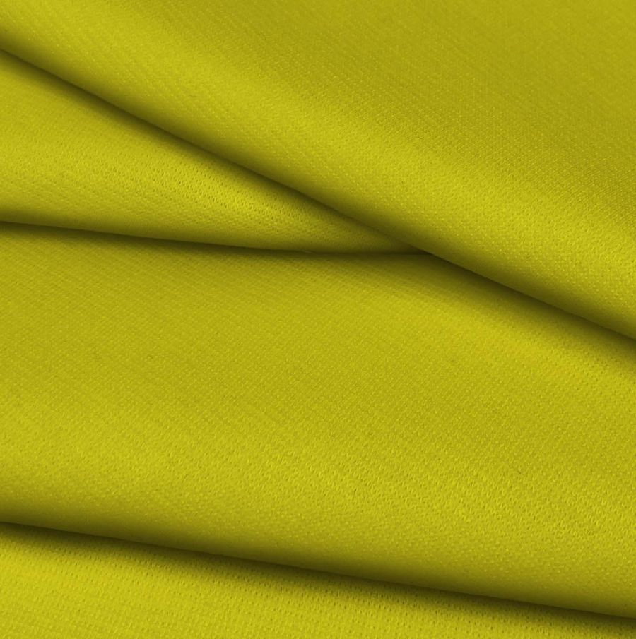 La tela base Punto Roma Elástico - Lyon se compone de 97% de poliéster y 3% de elastano, con un gramaje de 282 gr/m2, un ancho de 150 cm y una textura suave al tacto. El color impreso sobre esta tela es verde ácido, con un CMYK de 27-15-97-2. Este color resulta vibrante y alegre, y combina especialmente bien con tonalidades neutras como el blanco o el gris, así como con otros colores fuertes como el fucsia o el naranja.