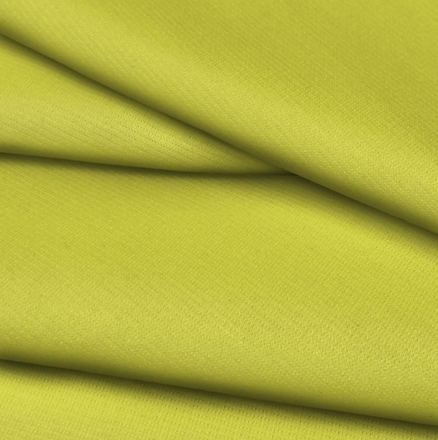 La tela base es el Punto Roma Elástico - Lyon, una tela de punto compuesta por 97% de poliéster y 3% de elastano, con un gramaje de 282 gr/m2 y ancho de 150 cm. El color liso impreso es amarillo plátano con un CMYK de 19 0 82 0, un tono vibrante y alegre que combina bien con azules, verdes y tonos neutros como el gris y el blanco. Es importante destacar que la tela está impresa con el color liso a una sola cara mediante impresión digital textil.