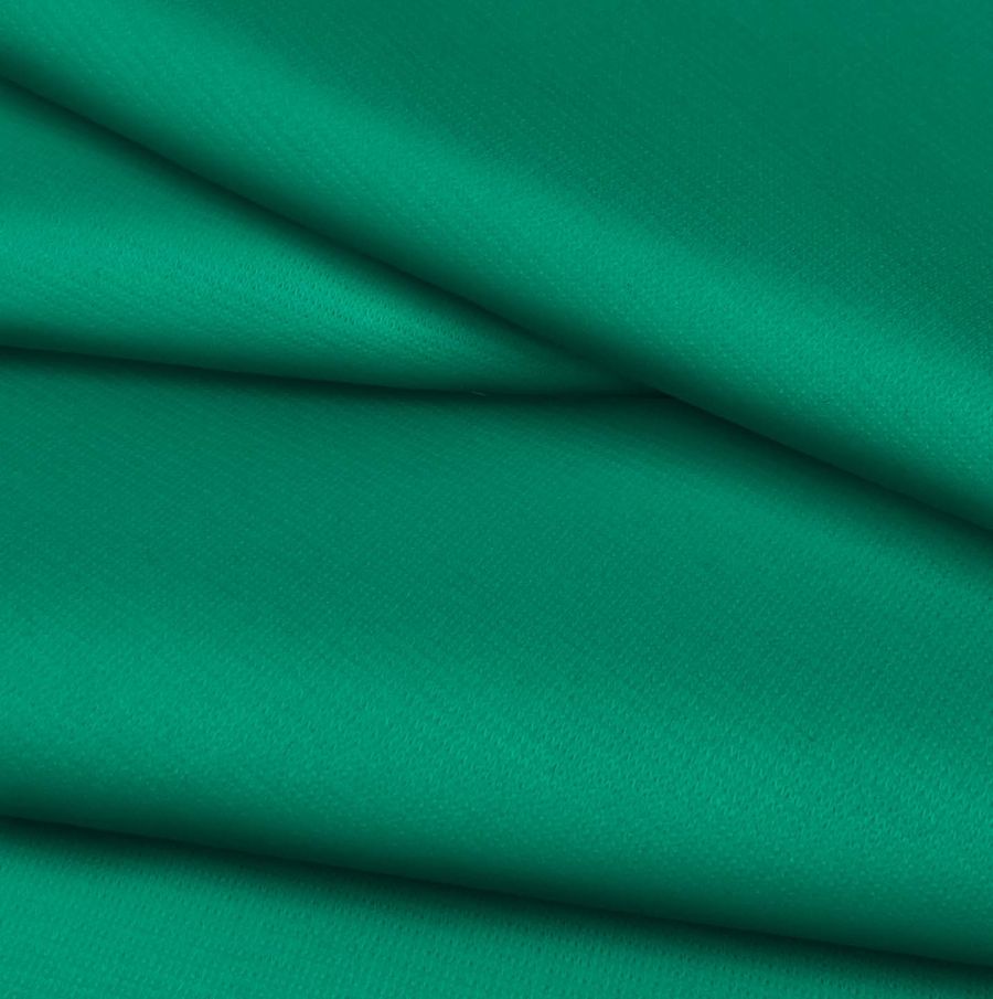 La tela base de este tejido es el Punto Roma Elástico - Lyon, una tela de punto compuesta por un 97% de poliéster y un 3% de elastano, con un gramaje de 282 gr/m2 y un ancho de 150 cm. El color liso impreso es un tono de verde menta oscuro con una composición de tinta CMYK de 85-23-69-7. Este color secundario se asemeja al frescor de la naturaleza y al equilibrio entre la mente y el cuerpo, brindando una sensación de calma a quien lo observe. Combina bien con tonos neutros como el gris y el blanco, o incluso con otros verdes más claros y azules.