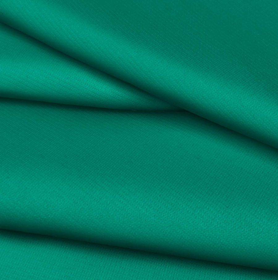 La tela base es Punto Roma Elástico - Lyon de composición 97% poliéster y 3% elastano, con un gramaje de 282 gr/m2 y un ancho de 150 cm. Su color liso impreso es un verde menta oscuro con una combinación de 84% de tinta cyan, 23% de tinta magenta, 64% de tinta yellow y 7% de tinta black, reflejando el CMYK 84 23 64 7.
