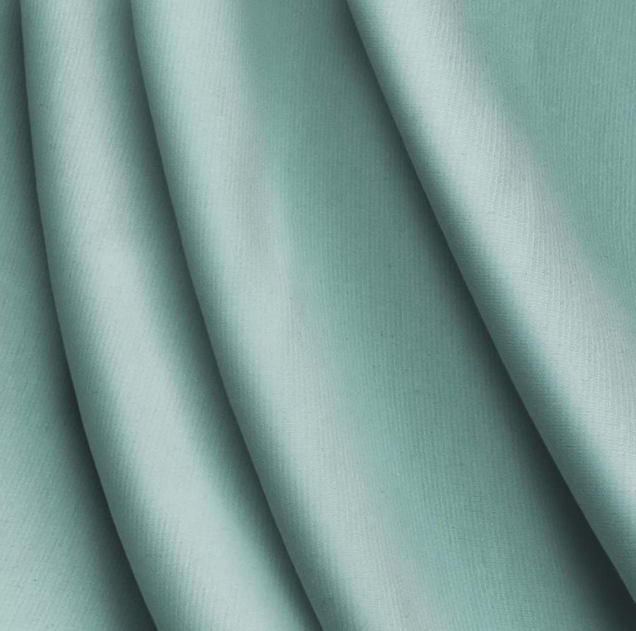 Este color secundario tiene un efecto refrescante y calmante, y se combina en particular con tonos neutros como el blanco, el gris o el beige, así como con otros tonos de la gama verde y azul. La tela base, impresa con este color a una sola cara por impresión digital textil, se caracteriza por su textura suave al tacto y su gran elasticidad.