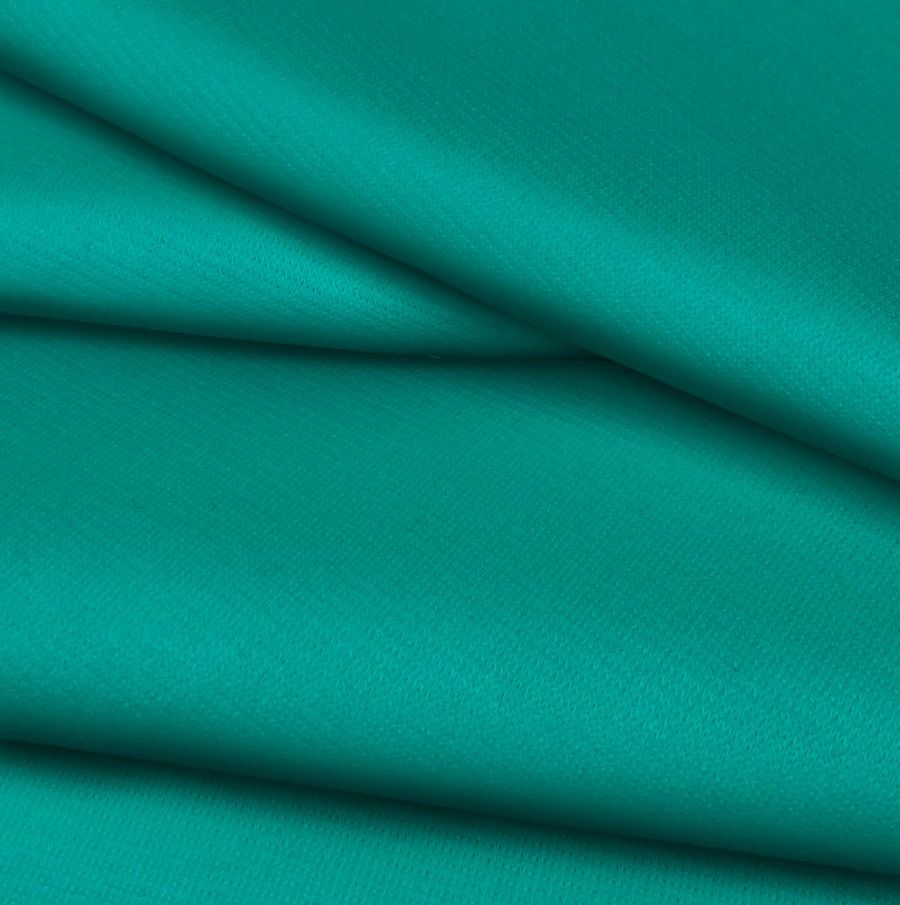 La tela base es el Punto Roma Elástico - Lyon, una tela de punto que está compuesta mayoritariamente por poliéster y con un 3% de elastano, lo que le da una gran elasticidad y permite un buen ajuste al cuerpo. El gramaje es de 282 gr/m2 y tiene un ancho de 150 cm. El color liso impreso es un tono de verde denominado Espuma de mar verde, que se obtiene a través de la tecnología de sublimación con un CMYK de 81 18 53 4. Este color es vibrante y suave, evocando paisajes marinos y tranquilidad. Además, combina muy bien con colores claros como el blanco y el beige, así como con otros tonos de verdes y azules en un ambiente relajante y fresco.