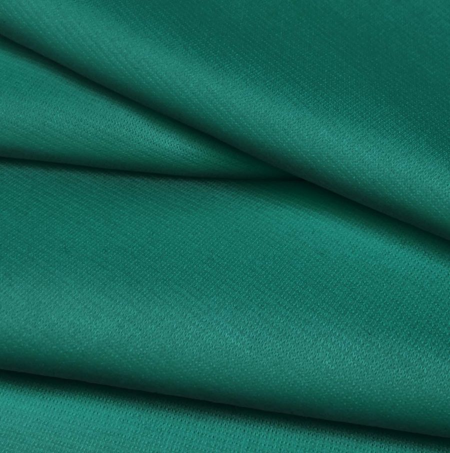 La tela base es Punto Roma Elástico - Lyon, una tela de punto compuesta por un 97% de poliéster y un 3% de elastano, con un gramaje de 282 gr/m2 y un ancho de 150 cm. El color liso impreso en esta tela es un verde menta oscuro con un CMYK de 87 32 61 23. Este color simboliza la frescura y naturaleza y técnicamente es un color muy equilibrado con una alta intensidad de cian y bajo nivel de magenta y negro.