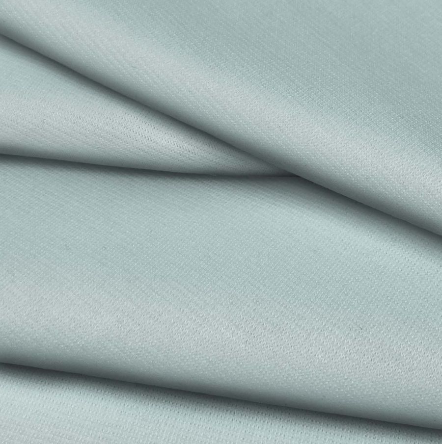 La tela base, Punto Roma Elástico - Lyon, es una tela de punto compuesta por 97% de poliéster y 3% elastano, con un gramaje de 282 gr/m2 y un ancho de 150 cm. Su color liso impreso es verde con tonos de crema de menta, con un CMYK de 29 5 17 0. Este color combina bien con tonos neutros como el blanco, beige y gris.