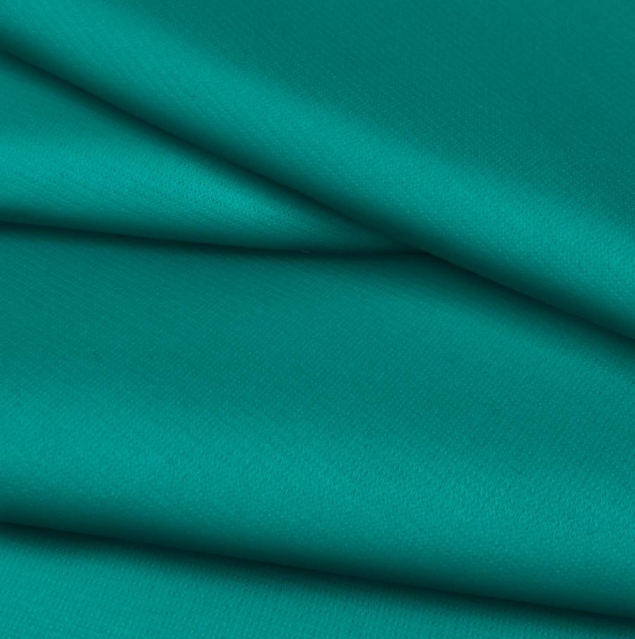 La tela base es el Punto Roma Elástico - Lyon, una tela de punto con una composición de 97% poliéster y 3% elastano. Tiene un gramaje de 282 gr/m2 y un ancho de 150 cm. El color liso impreso cuenta con un CMYK de 84 25 53 9 y se presenta en tonalidades de verde y verde azulado. El color verde azulado es un tono que trasmite frescura, calma y seguridad, además de estar relacionado con lo natural y lo ecológico. Este color combina perfectamente con los tonos neutros como el blanco o el negro, así como con tonalidades tierra y marrones.