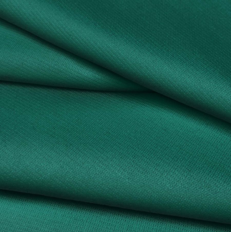 La tela base es el Punto Roma Elástico - Lyon, compuesta por un 97% de poliéster y un 3% de elastano, con un gramaje de 282 gr/m2 y un ancho de 150 cm. El color liso impreso es un verde mar profundo con CMYK 89 36 65 33. Este color simboliza la fuerza y la profundidad del océano y combina armoniosamente con tonalidades de blanco, crema y beige.