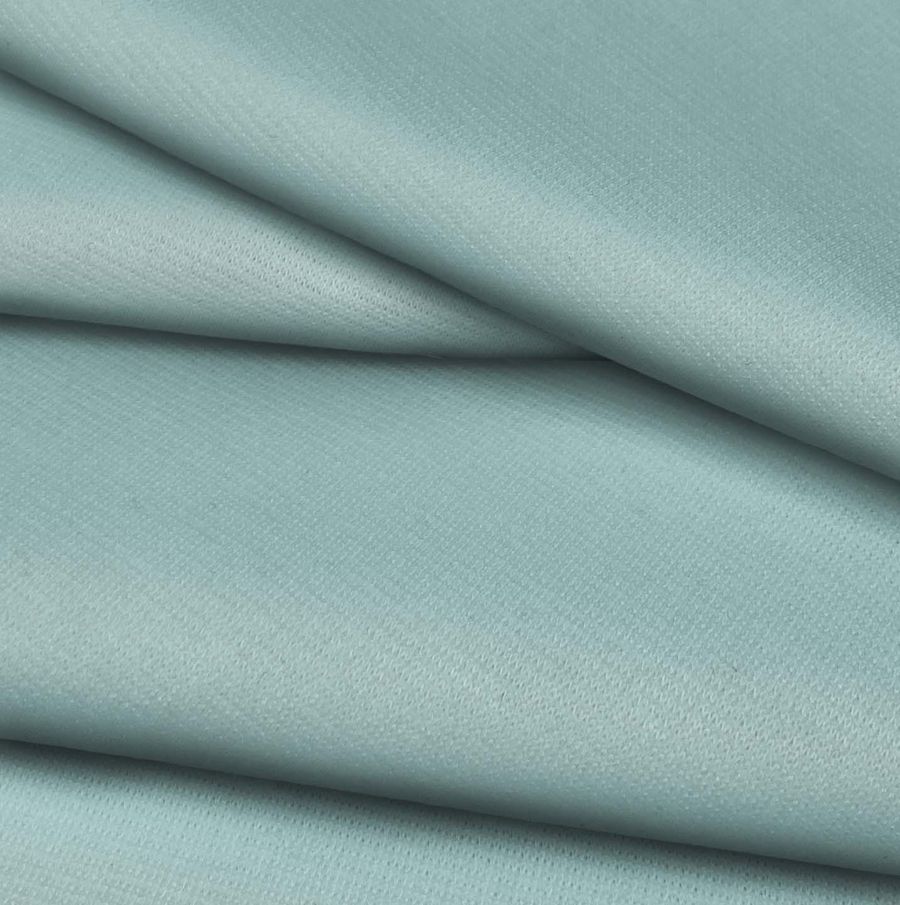 La tela base es Punto Roma Elástico - Lyon, compuesta por 97% POLIÉSTER y 3% ELASTANO, con un gramaje de 282 gr/m2 y un ancho de tela de 150 cm. Su color liso impreso es un refrescante tono de Verde Menta, con detalles de Cyan en un 43%, Magenta en un 8%, Yellow en un 25% y un 0% de negro, siendo su contenido de CMYK de 43 8 25 0. Este color secundario se caracteriza por ser un tono relajante y fresco, que combina a la perfección con otros tonos pastel como azul claro, rosa y beige.