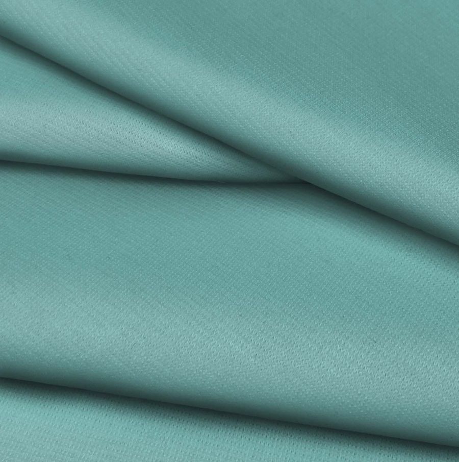 La tela base es el Punto Roma Elástico - Lyon, un tipo de tela de punto compuesta por un 97% de poliéster y un 3% de elastano, con un peso de 282 gr/m2 y una anchura de 150 cm. El color liso impreso es de un tono verde menta, con un CMYK de 59 13 35 1. Este tono se caracteriza por su delicadeza y frescura, con un leve matiz de azul que lo distingue de otros tonos verdes. El color menta combina especialmente bien con colores neutros y tierras, como el blanco, el beige o el marrón.