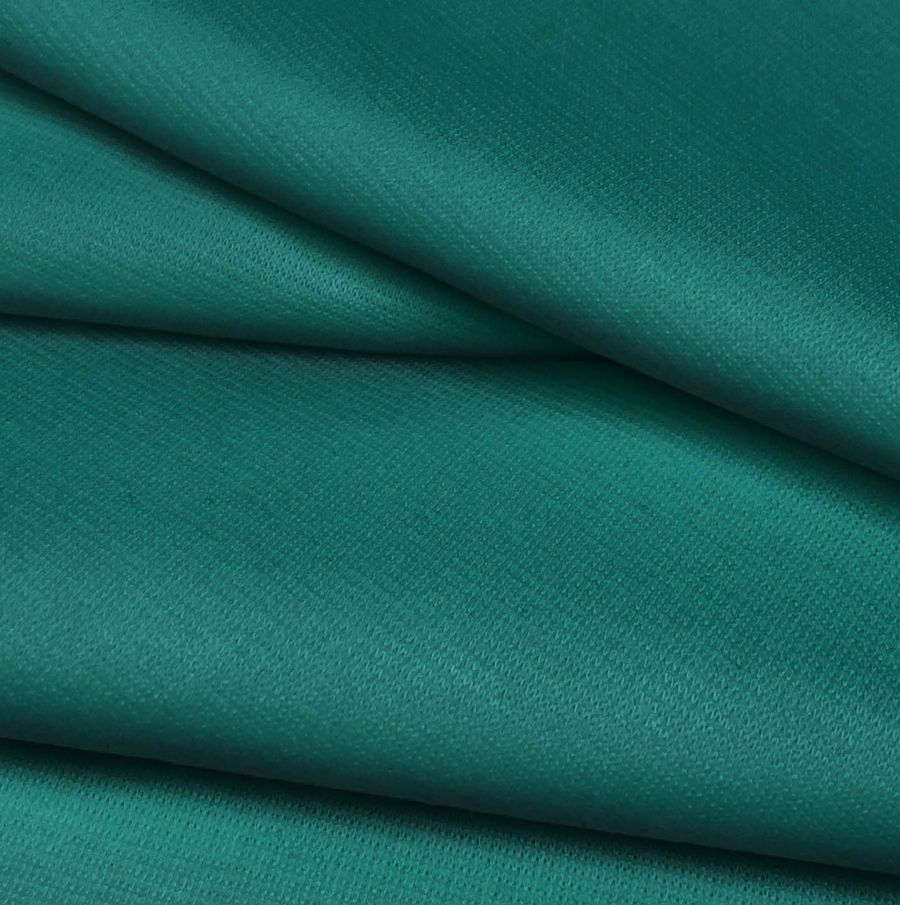 La tela base es Punto Roma Elástico - Lyon, compuesta por un 97% de poliéster y un 3% de elastano, con un gramaje de 282 gr/m2 y un ancho de 150 cm. Su color liso impreso es un verde azulado medio, con un CMYK de 87 34 56 26. Este color se combina particularmente bien con tonos neutros como el blanco y el gris, y con tonos más intensos como el rojo y el fucsia.