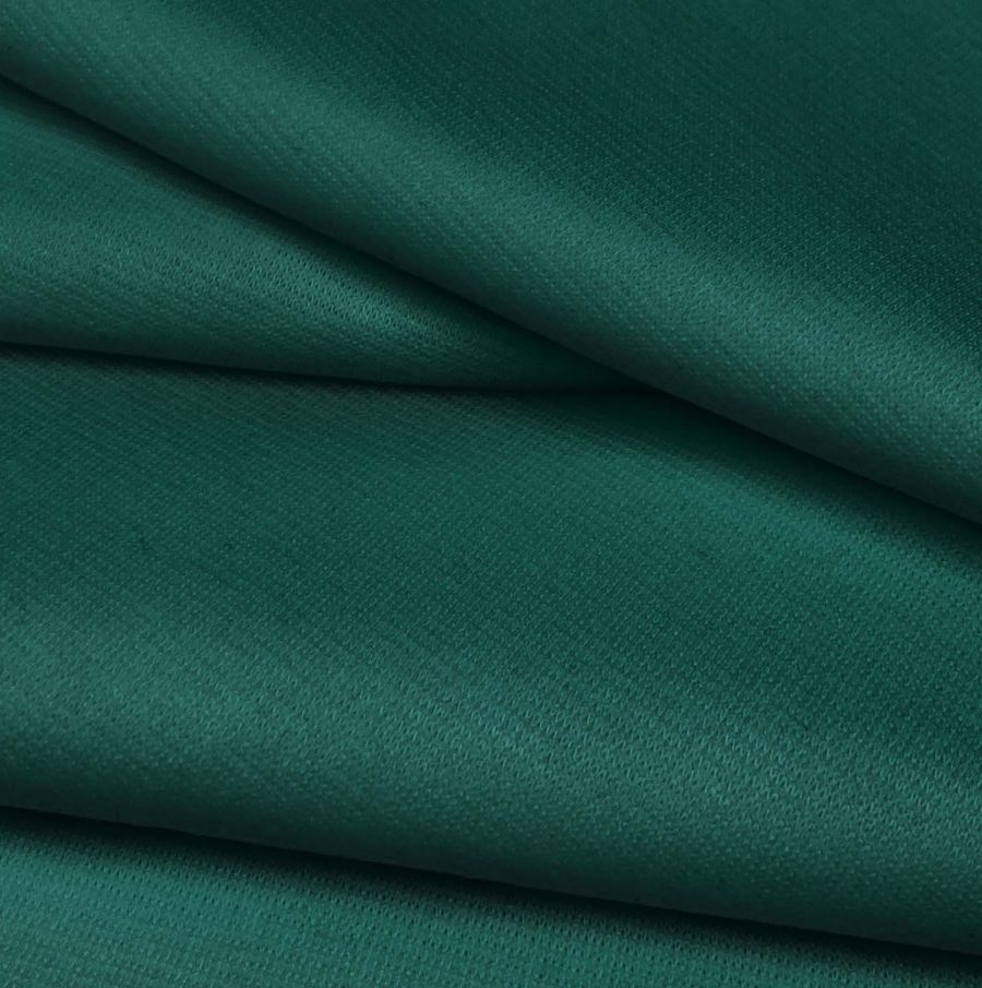 Las características generales de la tela base y el color liso son variadas y de gran calidad. La tela tiene una textura suave al tacto que es agradable en contacto con la piel y resulta cómoda de llevar. El color liso impreso es un verde con tonos de teal profundo que agrega profundidad y elegancia al tejido.