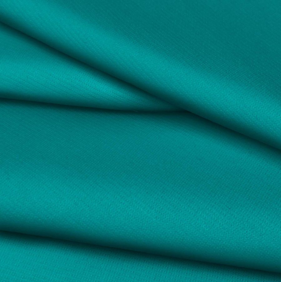 La tela base del tejido es Punto Roma Elástico - Lyon, de composición 97% poliéster y 3% elastano, con un gramaje de 282 gr/m2 y un ancho de 150 cm. El color liso impreso es Verde azulado, con un CMYK de 82 25 45 8, que irradia tranquilidad y armonía en su tono profundo. El color secundario es el verde, que simboliza la naturaleza y la frescura. Este tono combina muy bien con tonalidades de marrón, amarillo y rosa pastel. Es importante destacar que el tejido está impreso con el color liso a una sola cara por impresión digital textil.