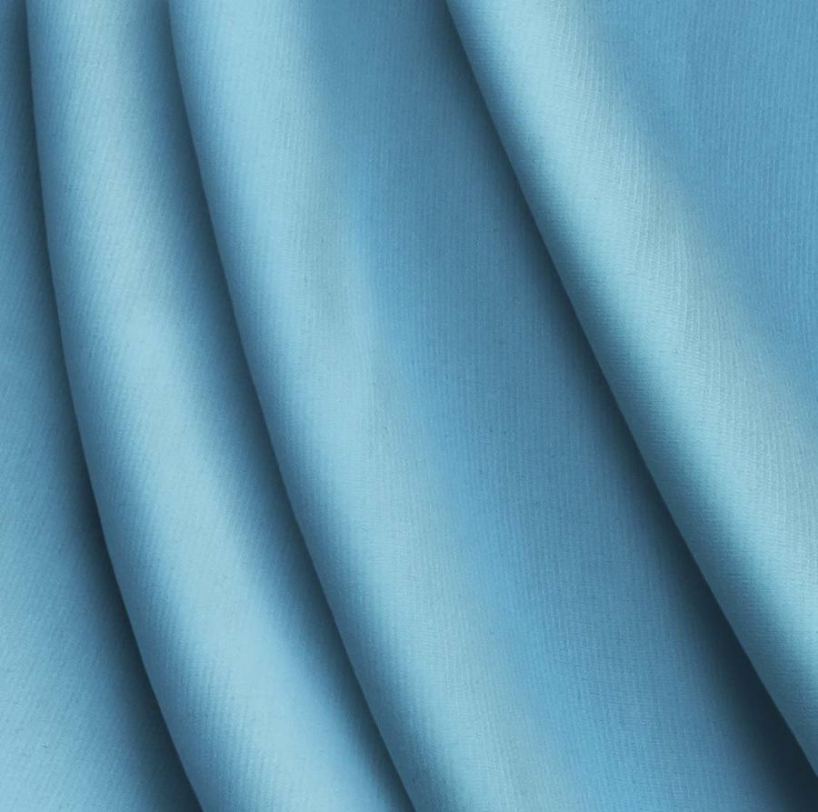 La tela base es el Punto Roma Elástico - Lyon, una tela de punto compuesta principalmente por poliéster y un 3% de elastano, con un gramaje de 282 gr/m2 y un ancho de 150 cm. Es suave al tacto y perfecta para prendas de moda de invierno. El color liso impreso es un tono Azul iceberg, con un CMYK de 59 14 4 0, lo que indica una alta intensidad en el tono cian, una moderada intensidad en el magenta y amarillo, y ausencia total de negro. Este color transmite una sensación de frescura y calma, además de combinar bien con tonos blancos, grises y otros tonos de azul.