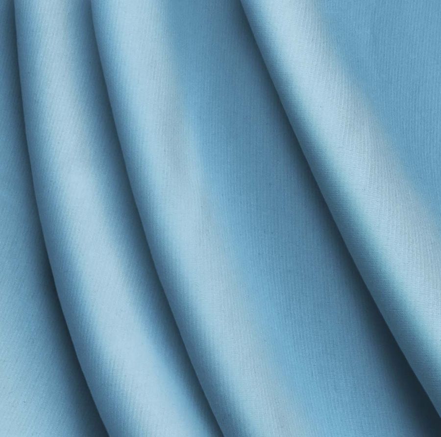 La tela base es el Punto Roma Elástico - Lyon, una tela de punto compuesta por 97% poliéster y 3% elastano, con un gramaje de 282 gr/m2 y un ancho de 150 cm. El color liso impreso es un azul cielo, con una tinta cyan de 55, una tinta magenta de 13, una tinta yellow de 1 y una tinta black de 0, lo que da lugar a un CMYK de 55 13 1 0. Este color es muy simbólico, ya que evoca la tranquilidad y la serenidad que nos transmite el cielo en un día despejado. Técnicamente, este color secundario es un tono de azul muy claro, que combina especialmente bien con otros tonos azules más oscuros, así como con tonos blancos y cremas.