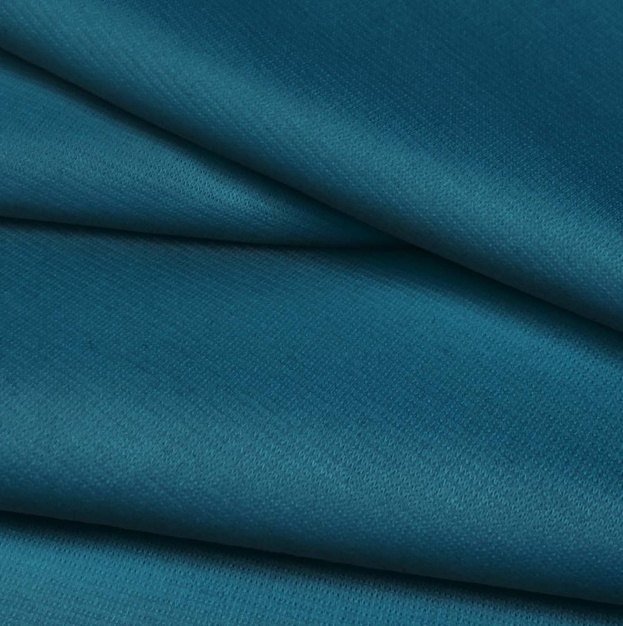 La tela base es un Punto Roma Elástico - Lyon con una composición de 97% poliéster y 3% elastano, con un gramaje de 282 gr/m2 y un ancho de 150 cm. El color liso impreso en la tela es un Azul marino profundo, con un CMYK de 94 56 37 26 y una tecnología de impresión por sublimación. La tela impresa presenta una textura suave al tacto.
