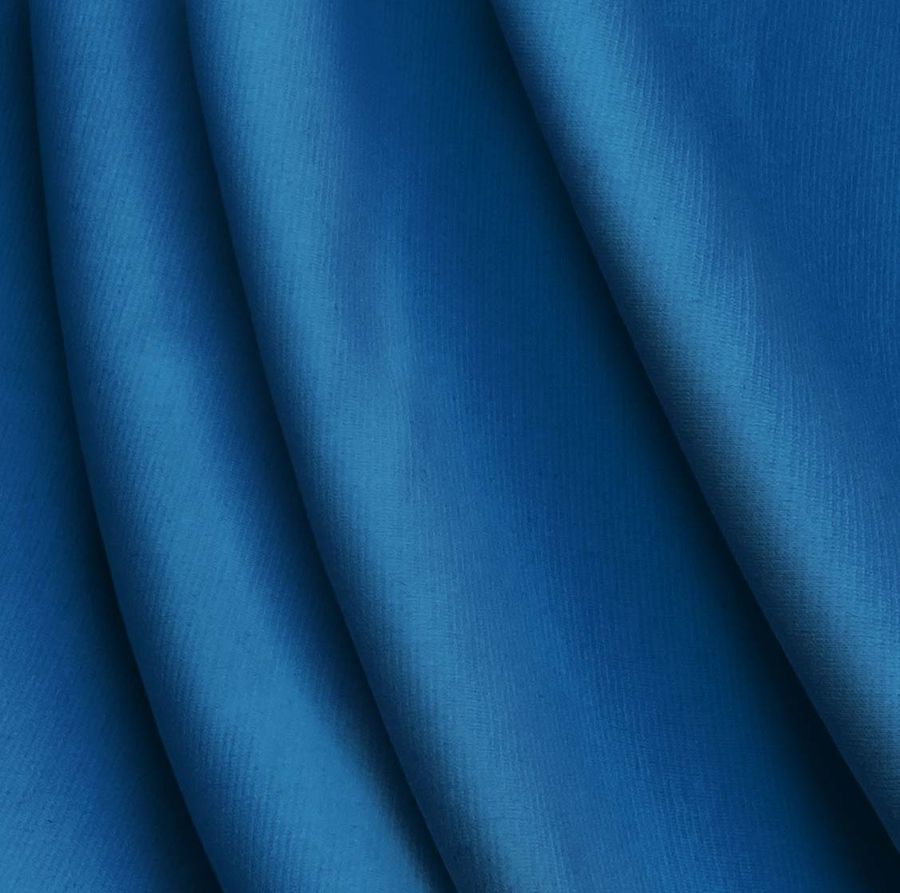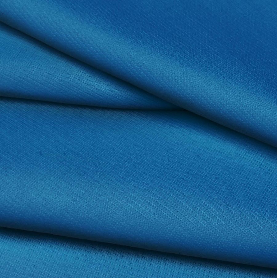 La tela base es el Punto Roma Elástico - Lyon, compuesta por un 97% de poliéster y un 3% de elastano, con un gramaje de 282 gr/m2 y un ancho de 150 cm. El color liso impreso es azul, con un CMYK de 92 57 13 2. Este color secundario simboliza la tranquilidad y la serenidad, y técnicamente resulta de la mezcla de cian, magenta y amarillo en diferentes proporciones. Combina muy bien con colores como el blanco, el gris y el negro, los cuales realzan su tono y sus cualidades. La tela está impresa con el color liso a una sola cara por impresión digital textil, lo que le confiere una gran calidad y definición.
