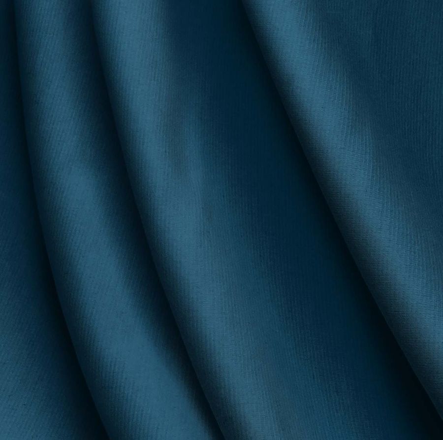 La tela base es el Punto Roma Elástico - Lyon, una tela de punto con composición de 97% poliéster y 3% elastano, con un gramaje de 282 gr/m2 y ancho de 150 cm. El color liso impreso es un Azul marino profundo con un CMYK de 98 66 40 32. El color secundario es un azul oscuro intenso, que simboliza la profundidad y estabilidad. Combina particularmente bien con tonos claros como el blanco, rosa, beige, gris y verde oliva.