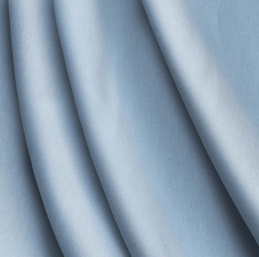 La tela base es Punto Roma Elástico - Lyon, compuesta por 97% de poliéster y 3% de elastano, lo que la hace resistente y con alta elasticidad. Es de color liso impreso en tono Azul Iceberg, con un CMYK de 40 15 2 0, lo que le da un aire fresco y retro. Este color combina con tonos amarillos y verdes, capaces de crear combinaciones con mucho contraste.