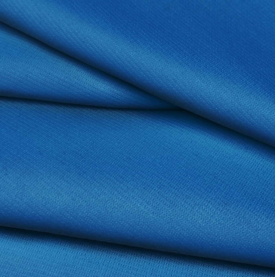 La tela base es el Punto Roma Elástico - Lyon, un tejido de punto con una composición de 97% poliéster y 3% elastano que se caracteriza por su suavidad y textura agradable al tacto. El color impreso es un tono azul celeste, con un contenido de tinta de 92 en cyan, 59 en magenta, 4 en yellow y 0 en black. Este color secundario simboliza la tranquilidad y la serenidad del cielo en primavera, y combina muy bien con otros tonos de la misma familia como el azul claro, el celeste o el turquesa.