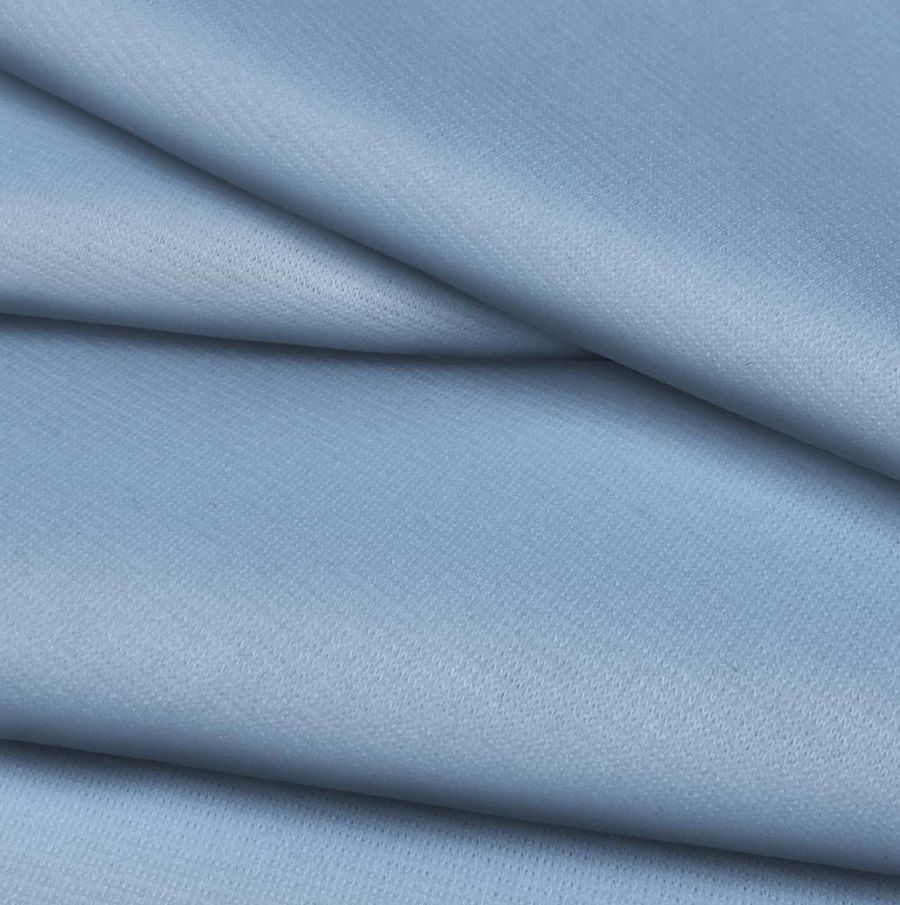 La tela base es el Punto Roma Elástico - Lyon, una tela de punto compuesta por 97% de POLIÉSTER y 3% de ELASTANO, con un gramaje de 282 gr/m2 y una anchura de 150 cm. El color liso impreso es un Azul-Azul violeta claro que se genera con una combinación de 48% de Tinta Cyan, 22% de Tinta Magenta, 3% de Tinta Yellow, y 0% de Tinta Black. Este color secundario simboliza la tranquilidad, la paz interior y la evocación de la naturaleza, y combina perfectamente con otros colores como el blanco, el gris y el rosa palo. La tela está impresa con el color liso a una sola cara por impresión digital textil, lo que significa que la imagen se transfiere directamente al tejido.