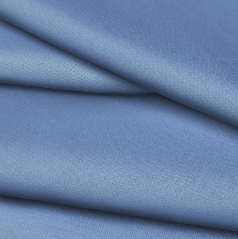 La tela base de este tejido es el Punto Roma Elástico - Lyon, una tela de punto con composición de 97% POLIÉSTER y 3% ELASTANO, con un gramaje de 282 gr/m2 y un ancho de 150 cm. El color liso impreso es un tono Azul violeta claro, donde la tinta Cyan representa el 60%, la tinta Magenta el 38%, la tinta Yellow el 4% y la tinta Black el 0%, con un CMYK de 60 38 4 0.