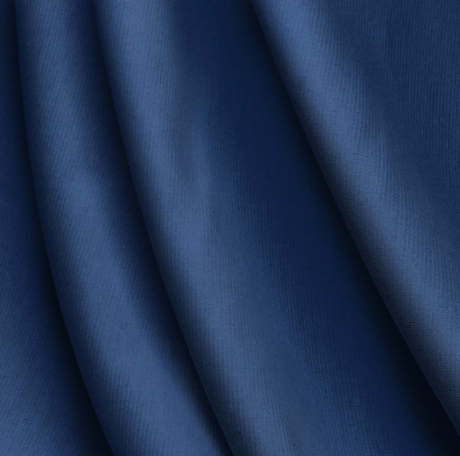 La tela base es el Punto Roma Elástico - Lyon, una tela de punto compuesta por un 97% de poliéster y un 3% de elastano con un gramaje de 282 gr/m2 y un ancho de 150 cm. Su color liso es un azul intenso, similar al azul lapislázuli, que se consigue mediante la combinación de tinta cyan al 100%, magenta al 80%, yellow al 29% y black al 13% según el modelo CMYK. El color secundario que resulta de esta combinación es un azul profundo y vibrante que recuerda al mar y transmite una sensación de calma y tranquilidad. Este tono se combina perfectamente con colores cálidos como el marrón, el beige o el amarillo para crear looks elegantes y sofisticados.