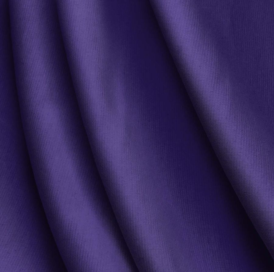La tela base es Punto Roma Elástico - Lyon, compuesta por un 97% de poliéster y un 3% de elastano, con un gramaje de 282 gr/m2 y un ancho de 150 cm. El color liso impreso es Morado, especificado por un CMYK de 95 100 16 5. Este color es vibrante y alegre, con un matiz de monstruo morado que le da un toque más atrevido.