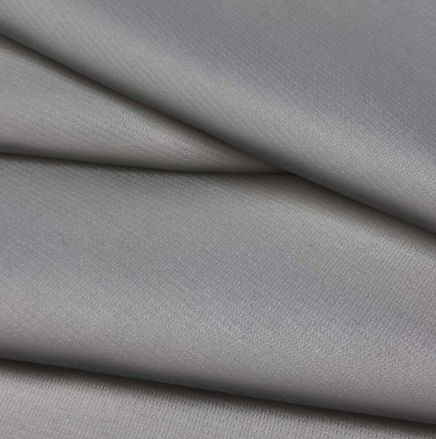 La tela base es Punto Roma Elástico - Lyon, una tela de punto con una composición de 97% poliéster y 3% elastano, con un gramaje de 282 gr/m2 y un ancho de 150 cm. El color liso impreso es Gris,Plata sónica, con un CMYK de 46 37 33 13, lo que indica una predominancia de cian y magenta. Este color secundario tiene una mezcla de tonalidades grises y plateadas que hacen referencia a la tecnología y electrónica, creando una imagen futurista. Combina bien con tonos oscuros como el negro y grises, así como tonos fuertes y claros como el naranja y el azul.
