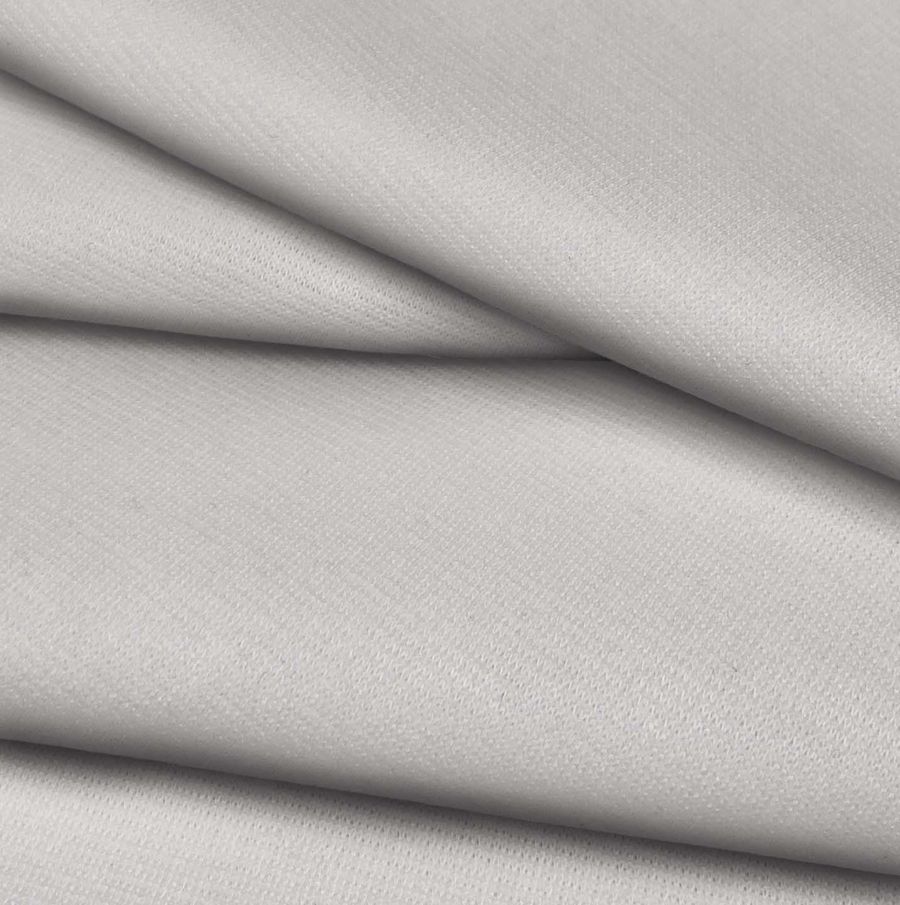 La tela base de este tejido es el Punto Roma Elástico - Lyon, una tela de punto compuesta por un 97% de poliéster y un 3% de elastano, con un gramaje de 282 gr/m2 y un ancho de 150 cm. Su color liso impreso es Gris Platino, con un CMYK de 12 11 12 0, lo que le da un tono elegante y sofisticado. Este color secundario evoca la sensación de estabilidad, seguridad y refinamiento. Es un color que combina especialmente bien con otros tonos grises, negros y blancos, así como con tonos metálicos como plata, oro y bronce.