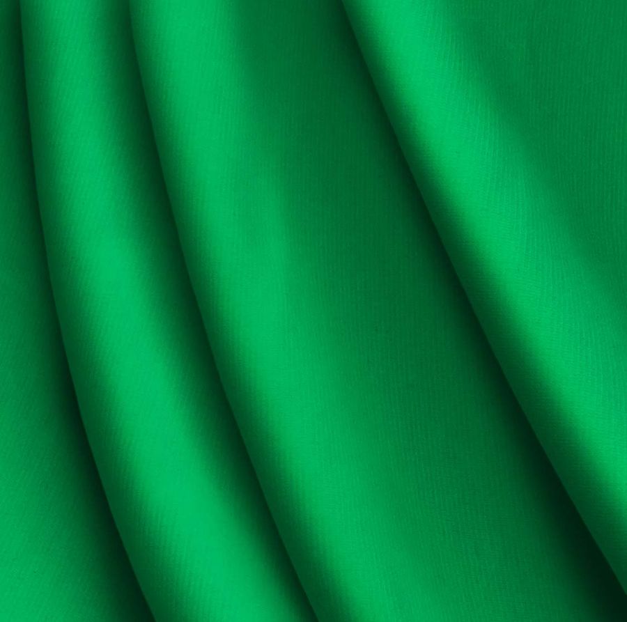 La tela base es el Punto Roma Elástico - Lyon, una tela de punto compuesta por un 97% de poliéster y un 3% de elastano con un gramaje de 282 gr/m2 y un ancho de 150 cm. El color liso impreso es un Verde ForestGreen con una combinación CMYK de 85 15 92 3. Este color combina especialmente bien con tonos marrones y beige, pero también puede combinarse con tonos azules o rojos, según la tonalidad con la que se desee jugar.