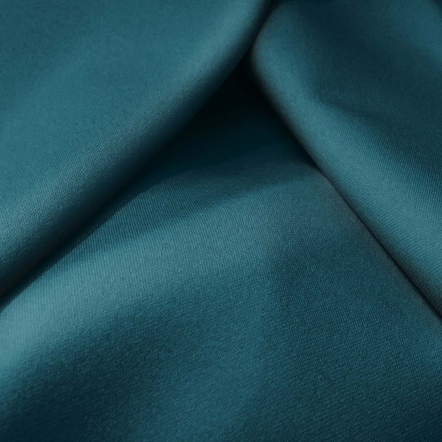 La tela base es la Sarga Bielástica - Lisboa, compuesta por 97% de poliéster y 3% de elastano, con un peso de 209 gr/m2 y un ancho de 150 cm. El color liso impreso es un verde Teal profundo con un CMYK de 96 58 50 50, que combina perfectamente con negro, gris y tonos dorados. La rugosidad y elasticidad son dos características notables de la textura, siendo su suavidad un valor añadido. Es importante mencionar que el tejido está impreso a una sola cara por impresión digital textil. La tela es perfecta para moda, accesorios y decoración, encontrando usos específicos en la fabricación de pantalones, faldas, cojines, cuadros y más. Se recomienda cuidarla evitando el blanqueado y secadora, y planchando a baja temperatura. La tecnología de impresión usada es la sublimación, que permite una alta resolución y calidad en la imagen impresa en la tela.